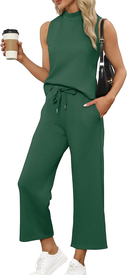 De mouwloze top met mock neck geeft een verzorgde, elegante uitstraling — stijlvol genoeg voor een zakelijke lunch, maar net zo geschikt voor een terrasje op vakantie. De wide leg crop broek heeft een elastische taille met trekkoord voor een perfecte, verstelbare pasvorm. Het gecontoureerde achterpand is speciaal vormgegeven voor de meest flatterende silhouet.